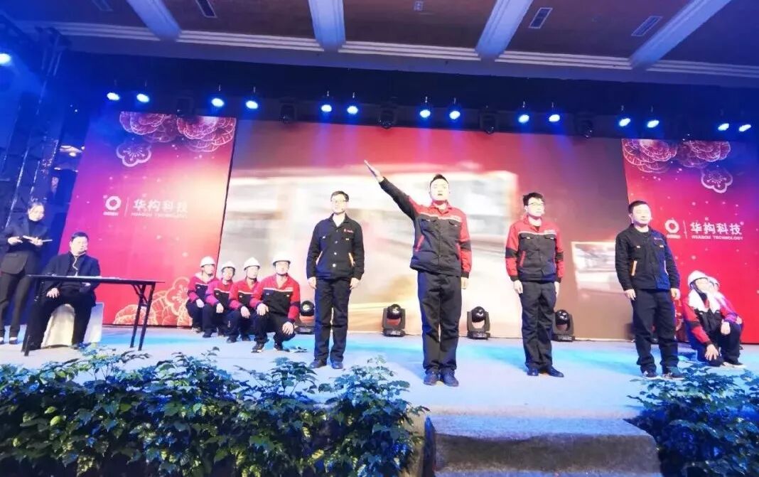 集团领导和公司领导为华构科技产业技术部、华构住工公司营销中心、富侨建材财务部、华构建工工程管理部、华构设计技术研发部5个先进集体颁奖。